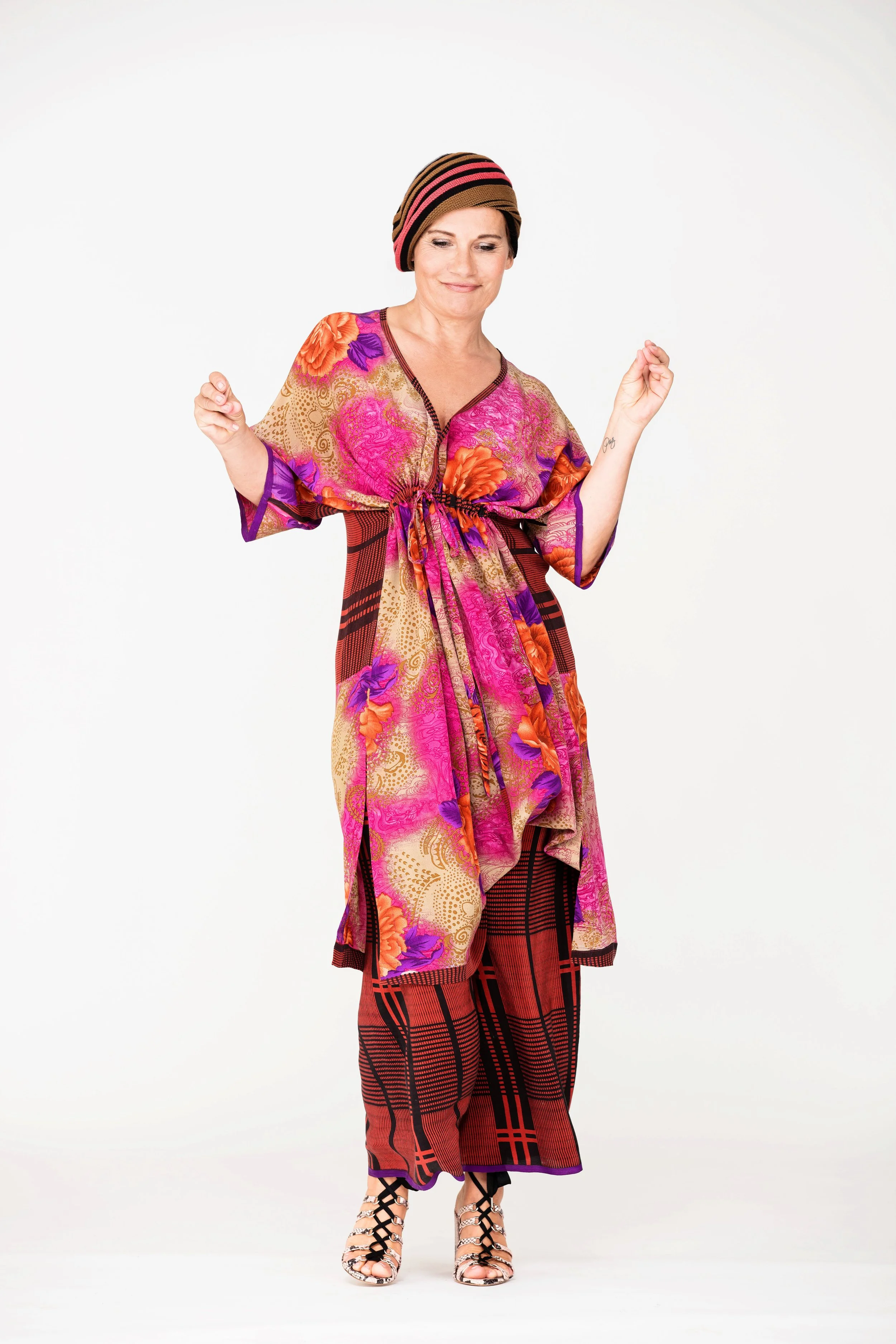 Wo auch immer ich weltweit war, gab es keine Treppe, die ich nicht erklommen hätte, keinen Hinterhof, in den ich mich nicht begeben hätte, um irgendwelche Schätze an Stoffen zu finden. Wie ein Trüffelschwein entdecke ich Kostbarkeiten, ganz gleich, wo sie verborgen sind. Mittlerweile werden mir aber auch viele Stoffe von Menschen geschenkt, die um meine Leidenschaft wissen. Aus den mir geeigneten Sachen, wie zum Beispiel Hohlsaumstickereien, alten Spitzen, Seiden und Wollstoffen kreiere ich meine Designs. Die Kimonos, die ich kaufe, nutze ich schwerpunktmäßig als Material. Sie wandle ich in zeitgemäße Kleidungsstücke, ohne ihnen jedoch den Charakter oder die Tradition zu nehmen. Meine größte Freude ist, Stoffen mit Geschichte ein neues Antlitz zu verleihen.